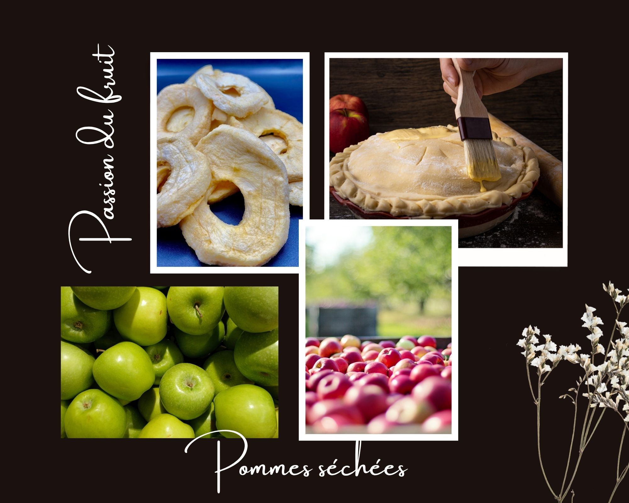 Discover our delicious dried apples, naturally sweet and full of flavor. Carefully sliced and gently dehydrated, they preserve all the taste and texture of the fresh fruit. Perfect as a healthy snack, a topping for cereals or yogurt, or an original twist in sweet and savory recipes. Packed vacuum-sealed to keep their freshness and crunch, they are easy to store and enjoy anywhere. With Passion du Fruit, you get premium dried fruits crafted with expertise and authenticity.