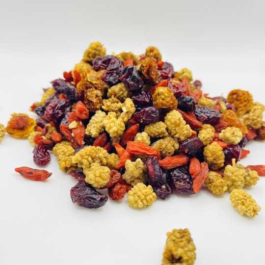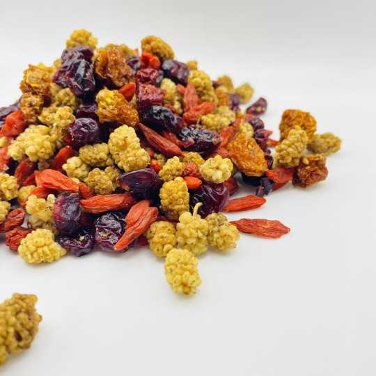 Discover our exclusive Vitality Boost Mix, a carefully curated selection of dried fruits designed to energize and strengthen your body! This flavorful blend includes antioxidant-rich cranberries, vitamin C-packed golden berries, nutrient-dense white mulberries, anti-aging goji berries, and naturally sweet raisins for sustained energy.
