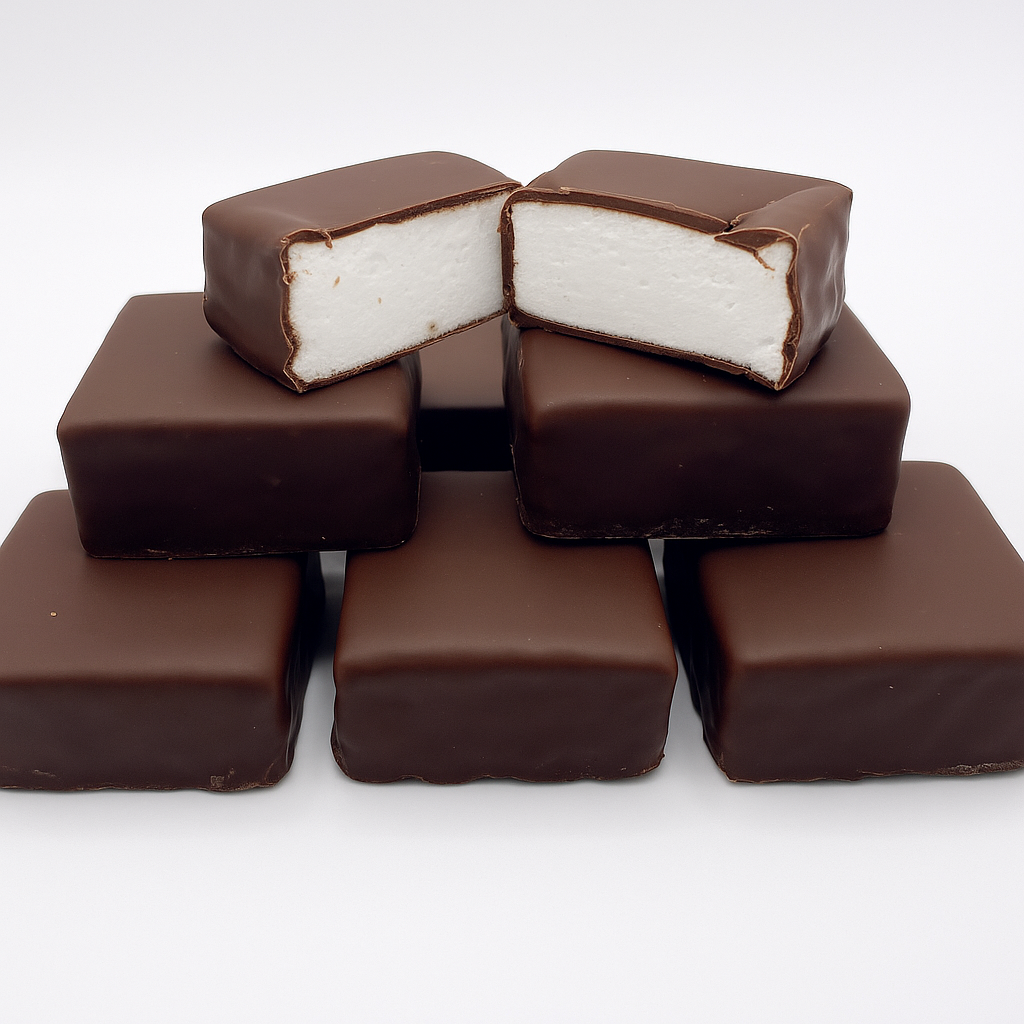 Découvrez notre carré de guimauve à la vanille enrobé de chocolat noir belge, une création exclusive Passion du Fruit disponible uniquement pour les fêtes de fin d’année. Derrière son enrobage de chocolat fin, se cache une guimauve moelleuse et légère, délicatement parfumée à la vanille. Un mariage parfait entre douceur et intensité, à savourer avec un café ou un thé chaud.